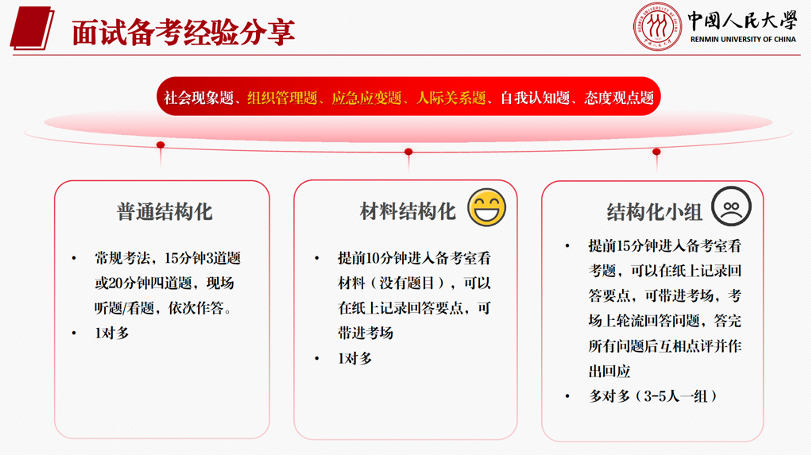 C师兄取得河南省定向选调笔试第一、天津市定向选调笔试第一以及某部委特招和北京市考进面的优秀成绩。师兄从“巡考心路”出发,复盘成功经验和失败教训,总结结构化面试逆袭技巧,鼓励同学们以韧性破局,以良好心态积极应考。