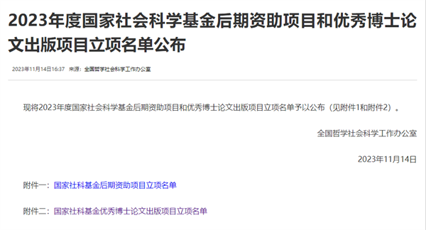 据悉,国家社科基金优秀博士论文出版项目主要资助研究深入、创新程度较高、具有较大发展潜力的优秀博士论文,突出对优秀青年学者的科研支持,2023年度全国共立项74项。这是自2019年该项目设立以来,我院博士毕业生首次获批立项资助,体现了我院博士研究生高质量培养的水平。